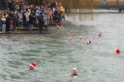 Kühne, frostsichere Chläusinnen und Chläuse stürzen sich